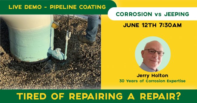 DetailsJerry Holton will demonstrate pipeline corrosion repair procedures on Friday June 5 at 7:30 AM. Tired of repairing a repair, overcoating, jeeping again and again?