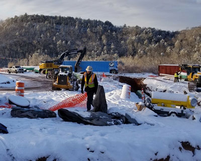 DetailsOur crews built tents and used indirect heaters to create favorable conditions to sandblast and coat below ground pipe.