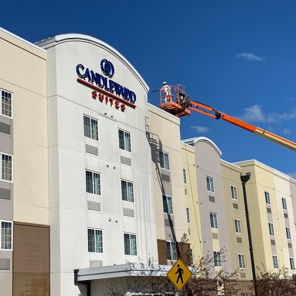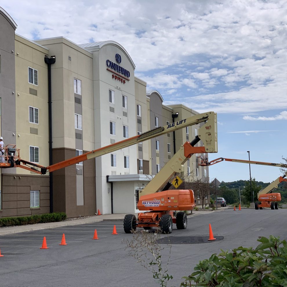 Painting hotel exterior surfaces like Stucco, Dryvit, EIFS, wood and cement board siding are not the only services we perform for our customers.